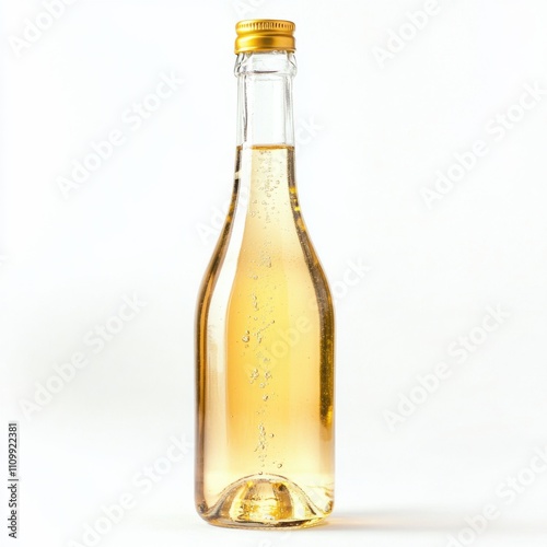 © aubriella, Fototapeta premium A bottle of aged champagne vinegar with a drizzle, isolated white background, realism art style