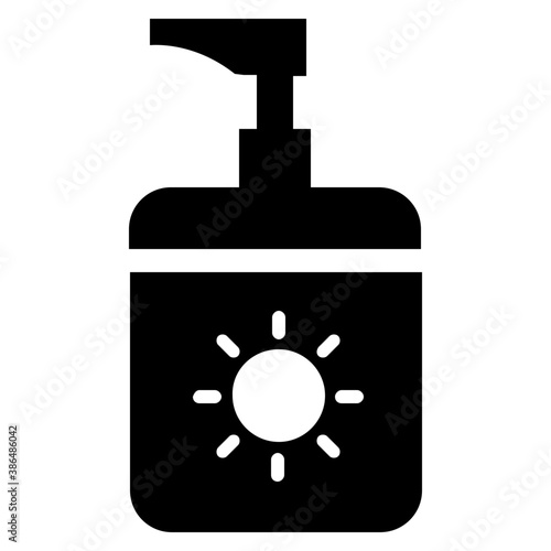 © Vectors Market, Fototapeta premium A bottle with push cap having shining sun sticker on it, denoting sunscreen icon