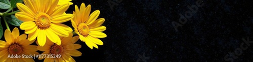Fototapeta premium A bouquet of bright yellow daisies placed on a black velvet cloth, flower...