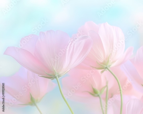 © SynthArt BWG, Obraz premium A bouquet of pink flowers with a blue background