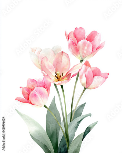 © siriwan, Fototapeta premium A bouquet of pink flowers with green stems
