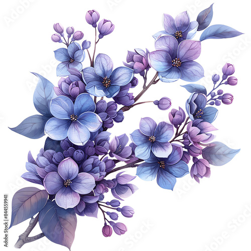 © fangphotolia, Fototapeta premium A bouquet of purple flowers with blue centers. The flowers are surrounded by green leaves.