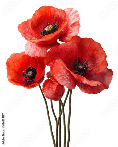 © Mst, Obraz premium A bouquet of red flowers with a white background