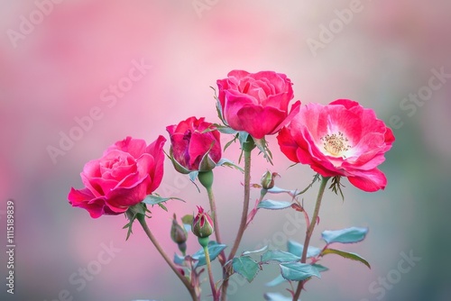 © mila103, Obraz premium A bouquet of red roses with a pink background