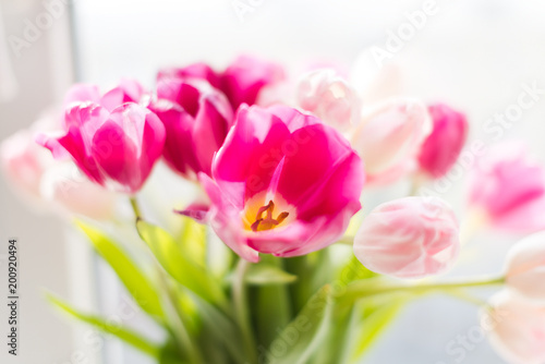 Fototapeta premium A bouquet of tulips in a vase. Soft selective focus