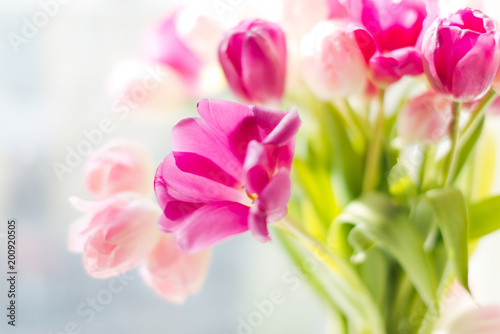 Fototapeta premium A bouquet of tulips in a vase. Soft selective focus