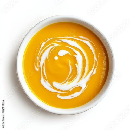 Obraz premium A bowl of creamy butternut squash soup with a swirl of cream, isolated white...