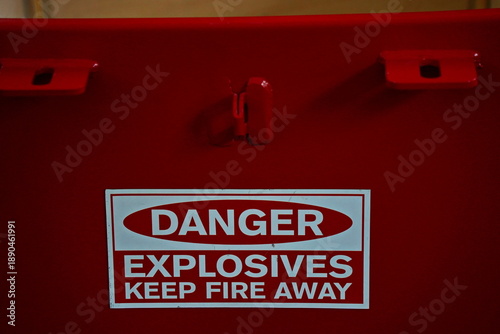 © Vladimir, Naklejka premium A box for storing and transporting explosives. Military exercises.