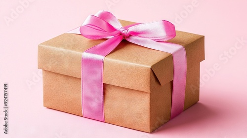 Obraz premium A box with a pink ribbon and bow on a pink background