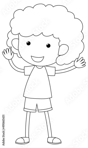 Fototapeta premium A boy black and white doodle character