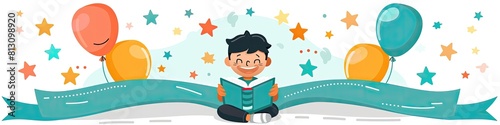 © AdriFerrer, Fototapeta premium A boy is reading a book under a banner