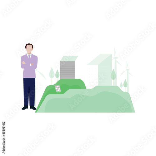 © Flaticons, Obraz premium A boy is standing near wind mill