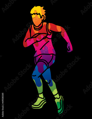 Fototapeta premium A Boy Running Action Cartoon Sport Graphic Vector