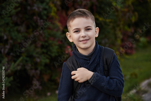 © jen2215, Fototapeta premium A boy with a suitcase is on the road on a journey, preparing for the trip
