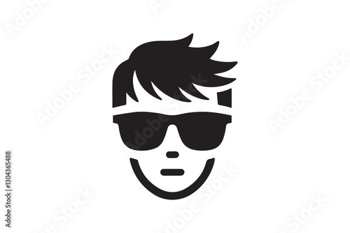 Fototapeta premium A boy with sunglass black color vector silhouette illustration isolated in white background