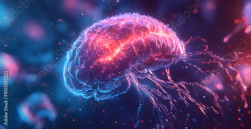 © ClicksdeMexico, Obraz premium A brain with a red and blue glow