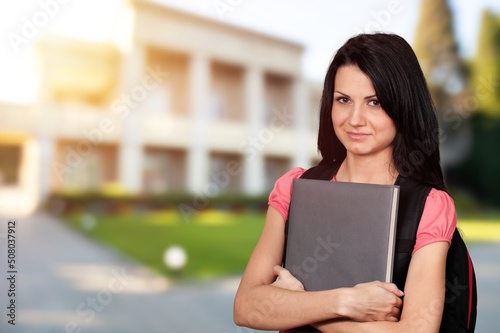 © BillionPhotos.com, Obraz premium A brainstorming clever student hold netbook posing