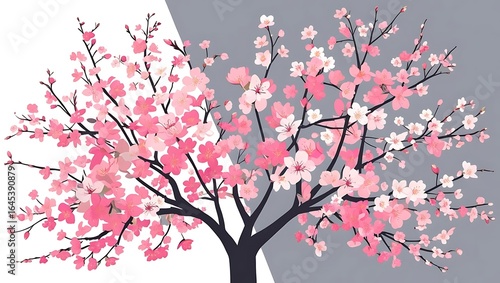 © bydee.id, Fototapeta premium A Branch of a Blooming Pink Sakura Tree in the Spring