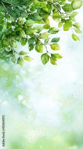 © Albert, Fototapeta premium A branch of a tree with green leaves on it