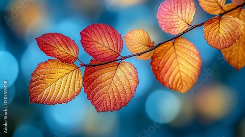 © Mikus, Fototapeta premium A branch of a tree with red and yellow leaves