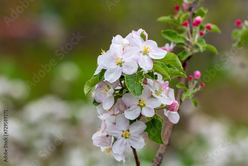 © Volodymyr, Obraz premium A branch of an apple tree with white-pink flowers