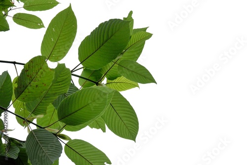 Fototapeta premium A branch of Kratom leaves on white isolated background for green foliage...
