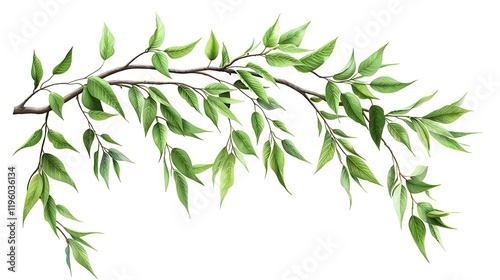 Fototapeta premium A branch of willow tree with long, flowing leaves, isolated on a white background