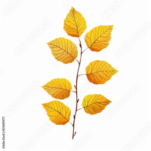 Fototapeta premium A branch with yellow leaves isolated on white background. Autumn foliage illustration. Perfect for seasonal designs.