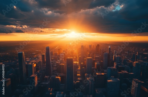 © Kai, Fototapeta premium A breathtaking aerial view of a capital city at sunset,