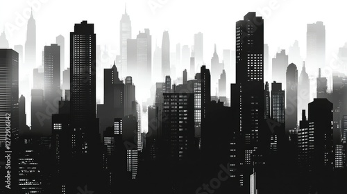 Fototapeta premium A breathtaking architectural scene with towering skyscraper silhouettes...