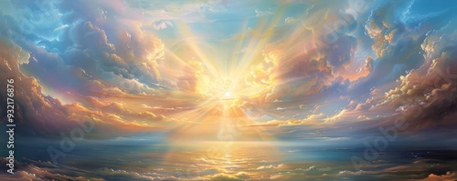 © Arthena, Fototapeta premium A breathtaking celestial sunrise over a vast ocean.