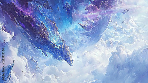 © Gendis Studio, Obraz premium A breathtaking cosmic landscape featuring vibrant blue and purple clouds with celestial formations