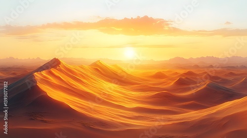 © SamsuAI, Naklejka premium A Breathtaking Desert Sunrise with Golden Light Spreading