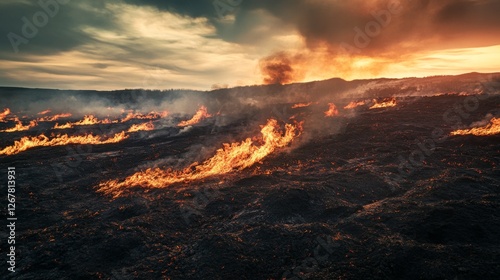 Fototapeta premium A breathtaking landscape engulfed in vibrant flames. Reflecting the raw power...
