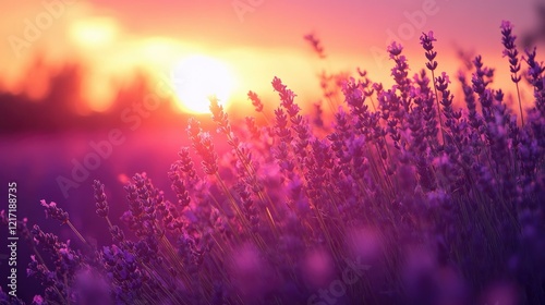 Naklejka premium A breathtaking lavender field stretches into the distance,