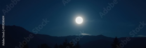 Fototapeta premium A breathtaking night scene featuring a bright full moon illuminating the serene mountain landscape, perfect for nature-inspired projects or calming visuals.
