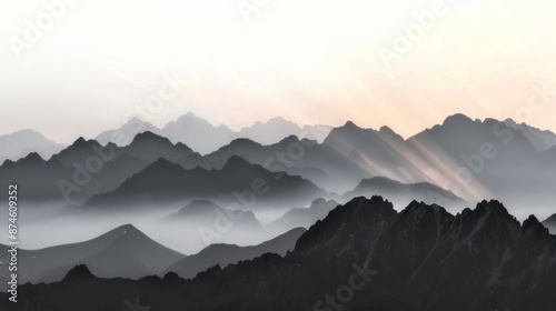 Obraz premium A breathtaking panoramic view of a mountain range at dawn with the first...