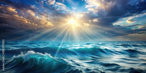 Obraz premium A breathtaking panoramic view of a sunlit ocean with rolling waves and...