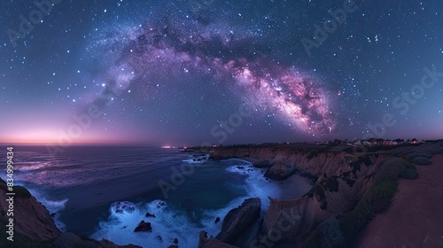 Naklejka premium A breathtaking shot of the Milky Way over a coastal headland.