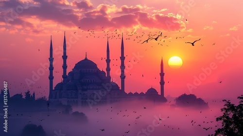 © Premium Resource, Fototapeta premium A breathtaking silhouette of a mosque at sunrise