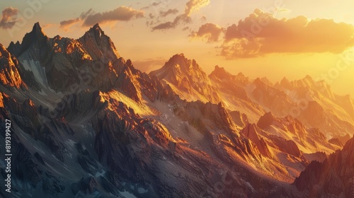 Obraz premium A breathtaking sunset casting warm colors over the mountain range, close-up...