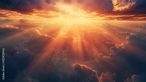 Fototapeta premium A breathtaking sunset illuminating clouds with golden rays, evoking serenity and wonder.