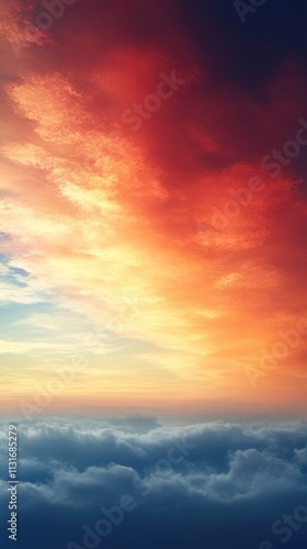 Obraz premium A breathtaking sunset over clouds, showcasing vibrant colors and serene...
