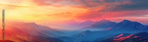 Obraz premium A breathtaking sunset over mountains, showcasing vibrant colors and serene...