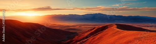 Naklejka premium A breathtaking sunset over rolling hills, highlighting vibrant colors and...