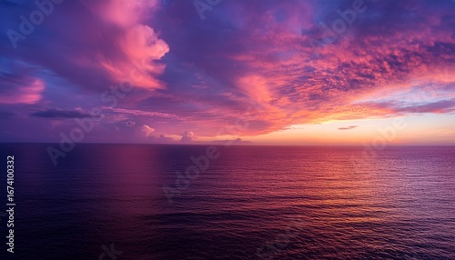 © Jamie, Fototapeta premium a breathtaking sunset sky filled with vibrant pink and purple clouds creating a serene atmosphere