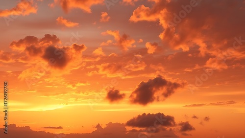 © cheng, Obraz premium A breathtaking sunset sky panorama with vibrant warm hues and glowing clouds.