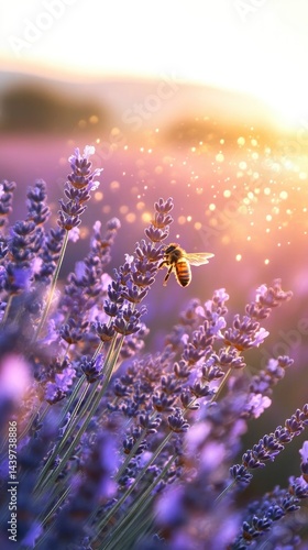 Naklejka premium A breathtaking ultra-detailed macro view of lavender fields in Provence, France, just before sunset