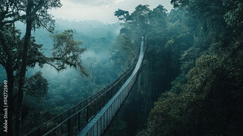 © Jonima, Fototapeta premium A breathtaking view from a rainforest treetop walkway, showcasing the sprawling canopy below