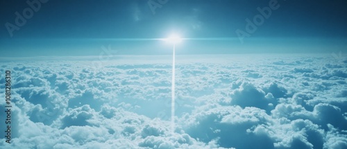 © Ai Studio, Naklejka premium A breathtaking view from above, where the sun bursts through endless clouds, portraying hope and infinite possibilities in an azure expanse.